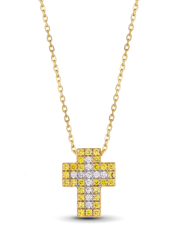 €112.5 x 12 άτοκες 18K Gold Cross with Diamonds by PRINTEZIS. A refined choice for your jewelry collection, Set with dazzling diamonds, Perfect for adding a touch of luxury and sophistication to any occasion.