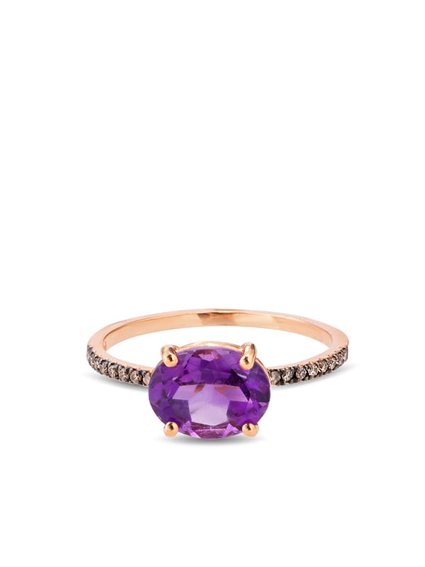 €68.33 x 12 άτοκες 18K Rose Gold Ring with Amethyst and Diamonds by PRINTEZIS. A standout piece for your rings collection, Set with dazzling diamonds, Perfect for adding a touch of luxury and sophistication to any occasion.