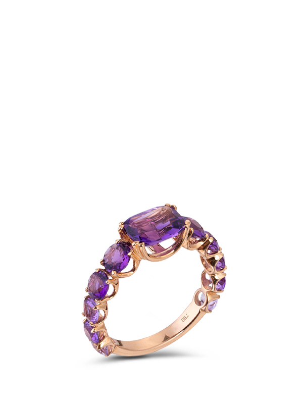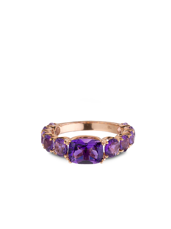 €102.78 x 18 άτοκες 18K Rose Gold Ring with Amethysts by PRINTEZIS. A standout piece for your rings collection, Perfect for adding a touch of luxury and sophistication to any occasion.