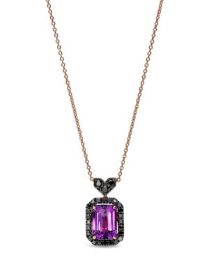 ΚΟΛΙΕ ΡΟΖ ΧΡΥΣΟ Κ18 ΜΕ ΑΜΕΘΥΣΤΟ ΚΑΙ ΜΑΥΡΑ ΔΙΑΜΑΝΤΙΑ