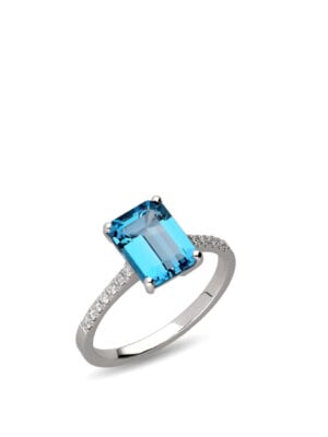 ΔΑΧΤΥΛΙΔΙ ΛΕΥΚΟΧΡΥΣΟ Κ18 ΜΕ BLUE TOPAZ ΚΑΙ ΔΙΑΜΑΝΤΙΑ