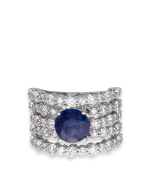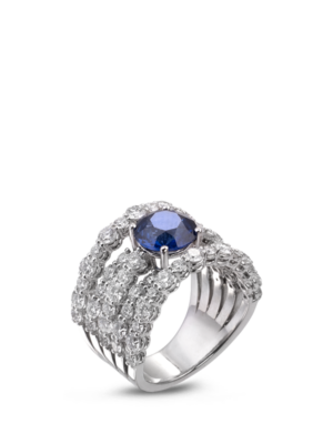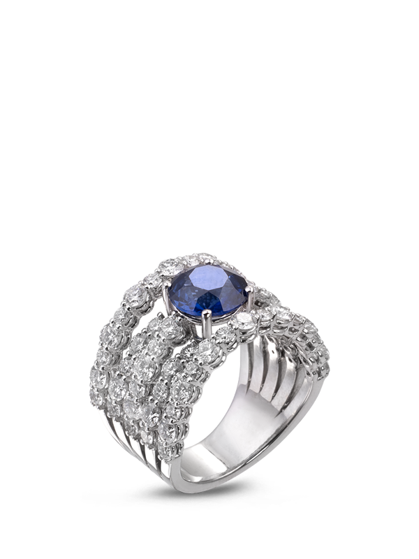 Δαχτυλίδι Λευκόχρυσο Κ18 με Διαμάντια και Ζαφείρι