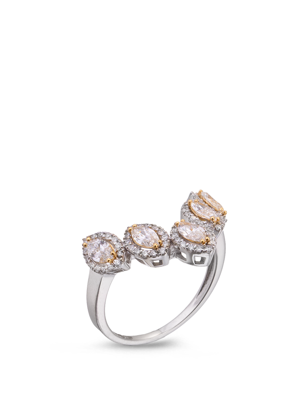 Δαχτυλίδι Λευκόχρυσο Κ18 με Λευκά και Κίτρινα Διαμάντια