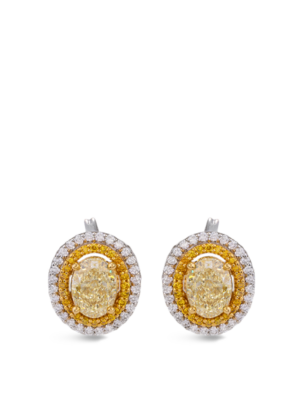 Σκουλαρίκια Λευκόχρυσα Κ18 με Λευκά και Κίτρινα Διαμάντια