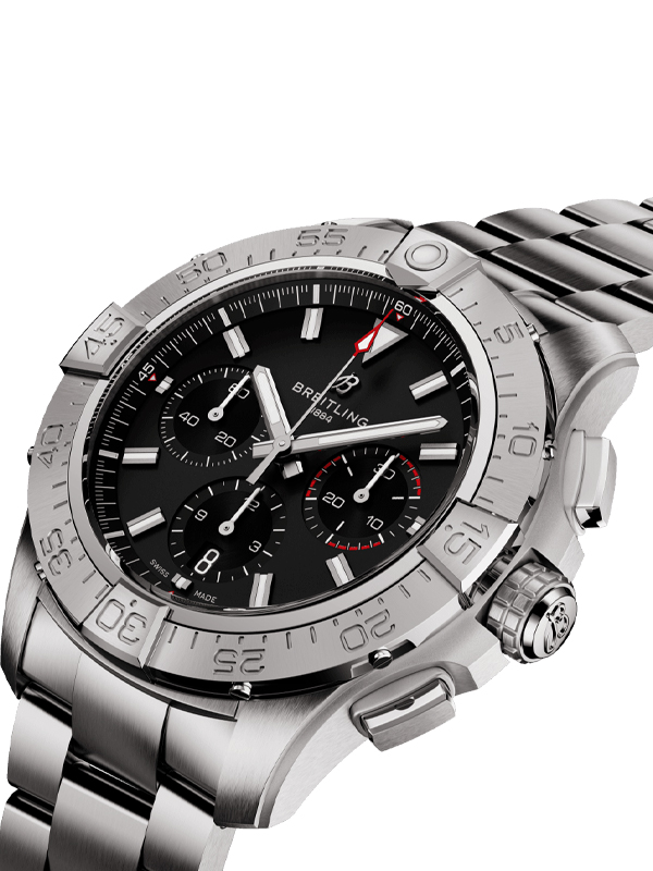 €300 x 24 άτοκες Αυτόματο Ρολόι του οίκου Breitling της σειράς Avenger με μαύρο καντράν, χρονογράφους και μπρασελέ από ανοξείδωτο ατσάλι. Με διάμετρο 44mm και στεγανό στα 300m. Συνοδεύεται από εγγύηση επίσημης αντιπροσωπείας Official retailer του Brand Breitling για την Ελλάδα