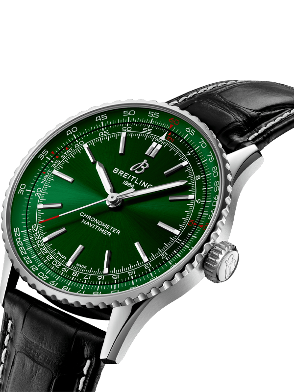 €235.42 x 24 άτοκες Αυτόματο ανδρικό ρολόι Breitling της σειράς Navitimer με μαύρο δερμάτινο λουράκι αλιγάτορα και πράσινο καντράν. Κάσα απο ανοξείδωτο ατσάλι διαμέτρου 41mm, στεγανή στα 30 μέτρα. Συνοδεύεται από 2 χρόνια εγγύηση επίσημης αντιπροσωπείας.