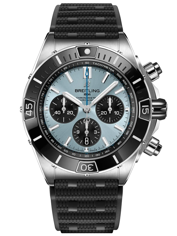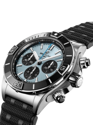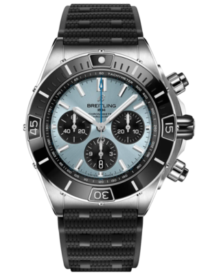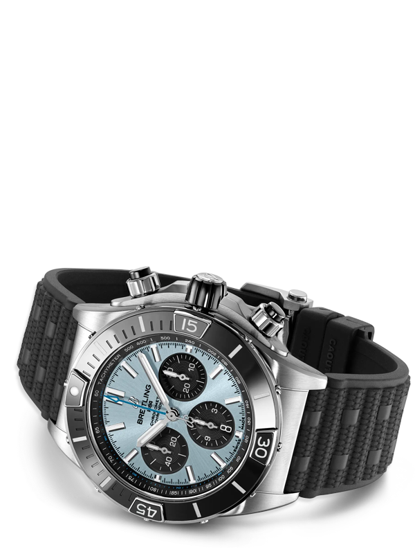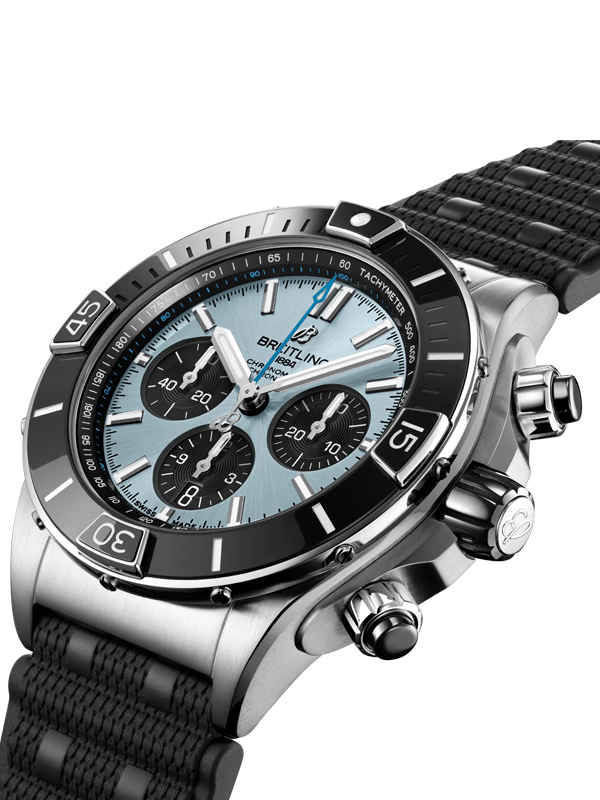 €527.08 x 24 άτοκες Το υπερτροφοδοτημένο ρολόι της Breitling για κάθε σου πρόκληση. Εμπνευσμένο από το αυθεντικό μοντέλο της δεκαετίας του 1980 που δημιούργησε η Breitling για την εμβληματική ακροβατική ομάδα Frecce Tricolori, το Super Chronomat είναι το πιο τολμηρό ρολόι της οικογένειας Chronomat. Διατίθεται σε διάφορους χρωματικούς και μεταλλικούς συνδυασμούς (ανοξείδωτο ατσάλι, 18k κόκκινο χρυσό και πλατίνα) και διαθέτει κεραμικά ένθετα στη στεφάνη, στα μπουτόν του χρονογράφου και στην κορώνα. Επιλέξτε ανάμεσα στο εμβληματικό μεταλλικό μπρασελέ Rouleaux ή σε λουράκι από καουτσούκ εμπνευσμένο από το Rouleaux, με αναδιπλούμενο κούμπωμα. Το Super Chronomat B01 44 κινείται από τον μηχανισμό Breitling Manufacture Calibre 01, πιστοποιημένο χρονογράφο COSC.