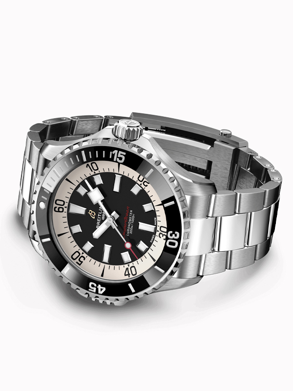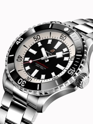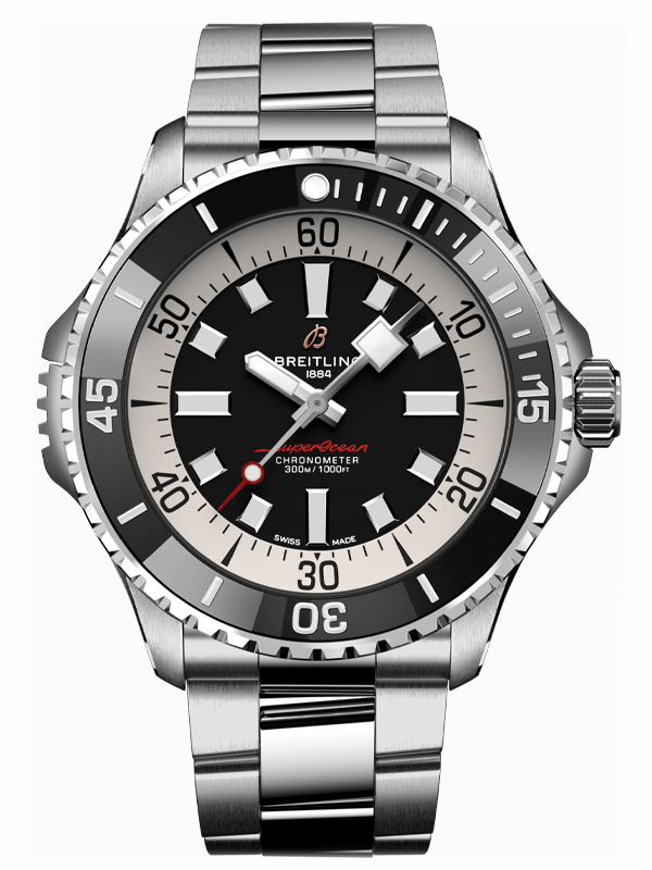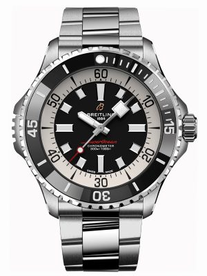 €235.42 x 24 άτοκες Αυτόματο ανδρικό ρολόι Breitling της ανανεωμένης σειράς Superocean με μπρασελέ από ανοξείδωτο ατσάλι και μαύρο καντράν. Ατσάλινη κάσα ,διαμέτρου 46mm στεγανή στα 300 μέτρα και μαύρη περιστρεφόμενη στεφάνη από κεραμικό. Συνοδεύεται από 2 χρόνια εγγύηση επίσημης αντιπροσωπείας.