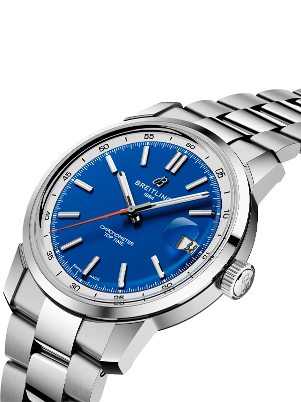 €245.83 x 24 άτοκες Αυτόματος ανδρικός χρονογράφος Breitling, απο την σειρά Top Time με μπλε καντράν, μπρασελέ και κάσα απο ανοξείδωτο ατσάλι διαμέτρου 38,00mm ,στεγανό στα 100 μέτρα. Συνοδεύεται από 5 χρόνια εγγύηση επίσημης αντιπροσωπείας Breitling.Official retailer του brand Breitling για την Ελλάδα."