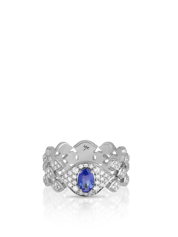 Δαχτυλίδι του οίκου CASATO από λευκόχρυσο 18 καρατίων με διαμάντια και ζαφείρι. Συνοδεύεται από πιστοποιητικό επίσημης αντιπροσωπείας.
