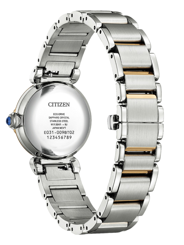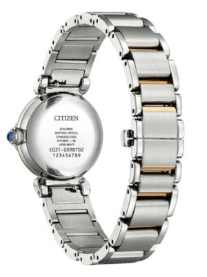 €66.5 x 6 άτοκες Ανακαλύψτε το κομψό CITIZEN EM1136-87D, ένα διαχρονικό γυναικείο ρολόι που συνδυάζει στυλ και λειτουργικότητα. Τροφοδοτείται από την καινοτόμα τεχνολογία Eco-Drive, προσφέροντας αυτονομία έως και 180 ημέρες, χωρίς να χρειάζεται αλλαγή μπαταρίας. Το λευκό καντράν από φίλντισι αναδεικνύεται από ένα λαμπερό διαμάντι και διαθέτει αραβικούς αριθμούς και ένδειξη εξάντλησης μπαταρίας. Ο αναλογικός χαλαζίας μηχανισμός E031-00M υψηλής ακρίβειας εγγυάται απόκλιση μόλις ±15 δευτερόλεπτα τον μήνα. Η στρογγυλή δίχρωμη κάσα από ανοξείδωτο ατσάλι έχει διάμετρο 26 mm και ύψος μόλις 8 mm, καθιστώντας το ιδανικό για λεπτούς καρπούς. Το ανθεκτικό κρύσταλλο ζαφειριού προστατεύει το καντράν από γρατζουνιές. Με αντοχή στο νερό έως 5 bar, το EM1136-87D είναι ιδανικό και για καθημερινή χρήση. Το μπρασελέ σε ροζ χρυσό χρώμα με ασφαλές αναδιπλούμενο κούμπωμα προσφέρει σταθερή εφαρμογή και ολοκληρώνει άψογα τον κομψό σχεδιασμό. Με βάρος μόλις 70 g, αυτό το ρολόι είναι εξίσου άνετο και κομψό. Το CITIZEN EM1136-87D αποτελεί ένα δείγμα υψηλής κομψότητας ένα αξεσουάρ που εντυπωσιάζει τόσο στον επαγγελματικό χώρο όσο και στον ελεύθερο χρόνο.