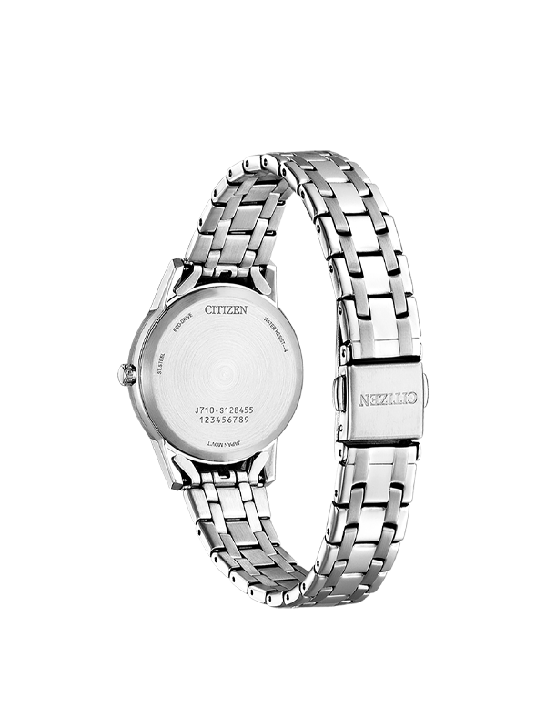 €34.83 x 6 άτοκες Eco-Drive γυναικείο ρολόι του οίκου Citizen με μπλε καντράν. Διαθέτει διάμετρο 29,50mm και είναι αδιάβροχο στα 30μέτρα.