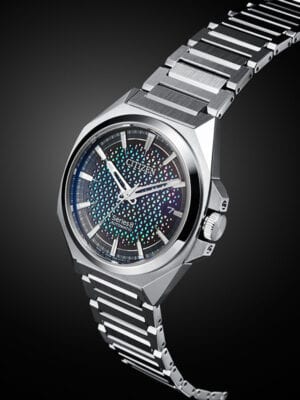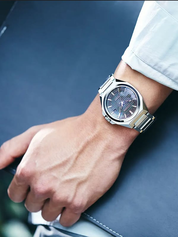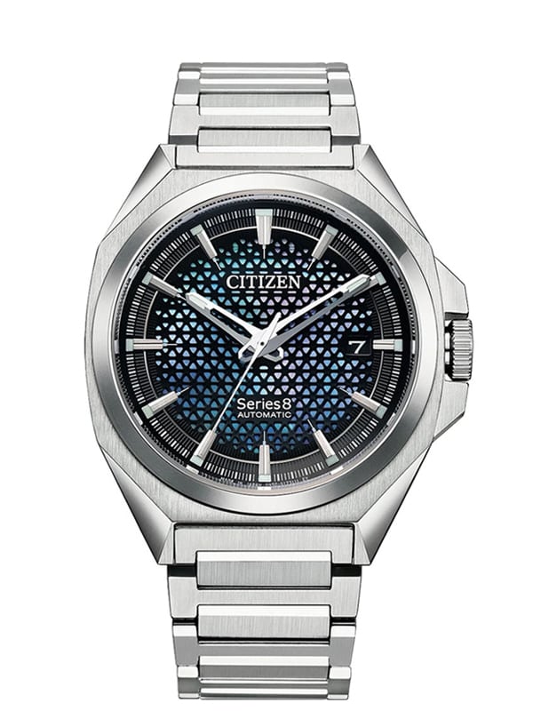 Ανακαλύψτε το νέο Citizen της συλλογής Series 8 830. Η οκτάγωνη κάσα του με διάμετρο 40,00mm είναι κατασκευασμένη από ανοξείδωτο ατσάλι και είναι στεγανή στα 100m. To καντράν του αποτελείται από 3 επίπεδα. Ένα μεταλλικό στο κάτω μέρος, στη μέση ένα επίπεδο Mother of pearl και το πάνω μέρος ένα μεταλλικό πλέγμα, δημιουργώντας ένα εντυπωσιακό αποτέλεσμα. Το κρύσταλλό του είναι από ζαφείρι με αντιανακλαστική επίστρωση. Ο αυτόματος μηχανισμός του είναι αντι-μαγνητικός έχει απόθεμα ενέργειας 48 hours με πλήρες κούρδισμα. Συνοδεύεται από 3 χρόνια εγγύηση της επίσημης αντιπροσωπείας.