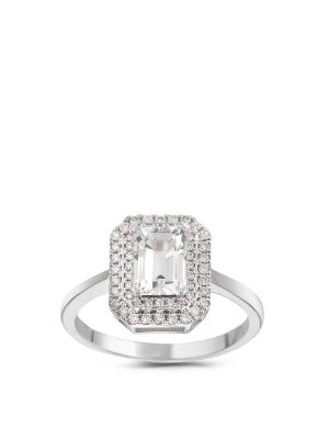 Δαχτυλίδι Λευκόχρυσο Κ18 με Λευκό Topaz και Διαμάντια