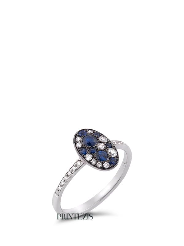 Δαχτυλίδι Λευκόχρυσο Κ18 με Ζαφείρια και Διαμάντια. Αναβαθμίστε πολυτελώς τις επίσημες εμφανίσεις σας φορώντας τη λάμψη των πολύτιμων και ημιπολύτιμων λίθων.Διαλέξτε το κατάλληλο κόσμημα για εσάς ή για δώρο ανακαλύπτοντας τις ολοκληρωμένες συλλογές μας σε μοντέρνα και κλασικά σχέδια. Κάθε κόσμημα συνοδεύεται από πιστοποιητικό και εγγύηση ποιότητας PRINTEZIS.