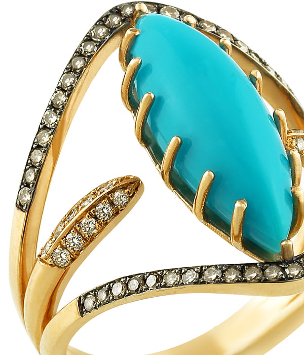 Δαχτυλίδι Ροζ Χρυσό 18K με Διαμάντια και Τυρκουάζ