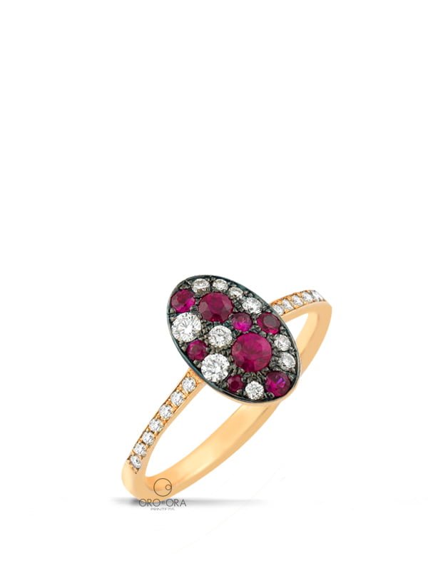 Δαχτυλίδι Ροζ Χρυσό 18K με Διαμάντια και Ρουμπίνια