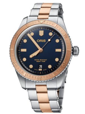 Ανδρικό αναλογικό ρολόι της εταιρίας Oris, μεσαίου μεγέθους με μεταλλικό μπρασελέ σε ροζ χρυσό χρώμα. Διαθέτει αυτόματο μηχανισμό που επιτρέπει να αποφεύγεται το χειροκίνητο κούρδισμα, καθώς αυτό επιτυγχάνεται με την κίνηση του χεριού περιστρέφοντας έναν ρότορα ο οποίος συσπειρώνει το ελατήριο.