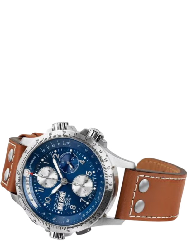 Σχεδιασμένο για πιλότους και κατασκευασμένο για περιπέτεια, το Khaki Aviation X-Wind Day Date Autochrono «πετά» μέσα από πλευρικούς ανέμους σε μια τολμηρή νέα εκδοχή. Με εντυπωσιακό μπλε καντράν, εσωτερική περιστρεφόμενη στεφάνη και απόθεμα ενέργειας 60 ωρών, αυτό το υψηλών επιδόσεων ρολόι τροφοδοτείται από τον μηχανισμό H-21 και είναι ιδανικό για όσους τολμούν να πλοηγηθούν στις περιπέτειες της ζωής με ακρίβεια και στυλ.