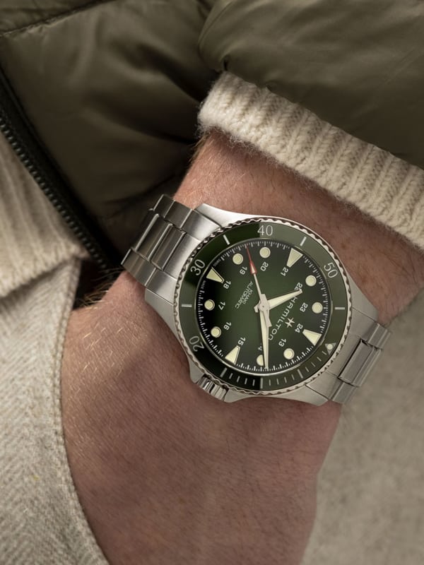 €95.42 x 12 άτοκες Στην παραλία, δίπλα στην πισίνα ή στο βάθος, το νέο Khaki Navy Scuba είναι εγγυημένο ότι θα κάνει μια βουτιά. Για τους σύγχρονους ναυτικούς, τους κολυμβητές με αναπνευστήρα, τους σέρφερ και τους λάτρεις της παραλίας, είναι εντυπωσιακό και λειτουργικό. Είτε προγραμματίζετε το μπάνιο σας, το τρέξιμο ή τον χρόνο σας στον ήλιο, είναι σίγουρο πως θα παραμείνετε χαλαροί, ακόμη και σε υψηλές θερμοκρασίες.