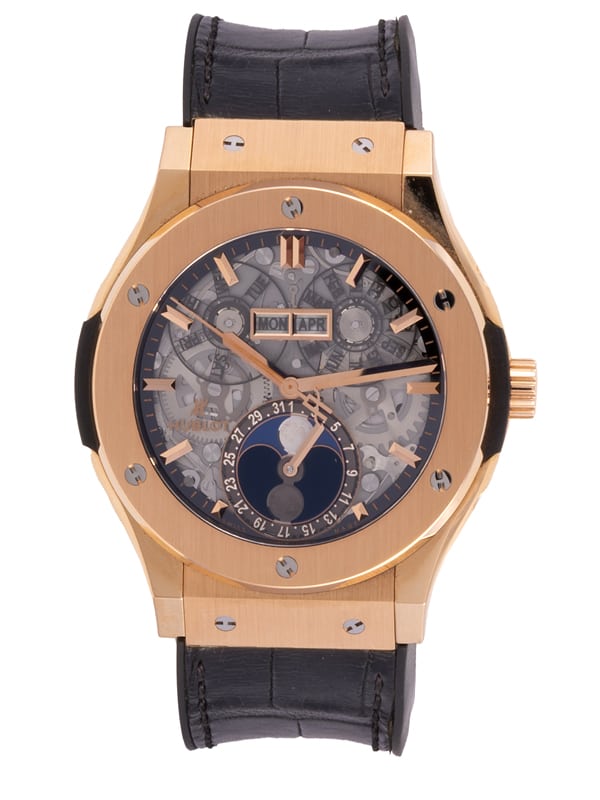 Ανακαλύψτε το Hublot Classic Fusion Aerofusion Moonphase με διάμετρο 45mm.Tο ρολόι έχει υποβληθεί στους απαραίτητους ποιοτικούς ελέγχους από το τεχνικό τμήμα, για τη διασφάλιση της αυθεντικότητας και καλής λειτουργίας, όπως ορίζεται από τον κατασκευαστή. Συνοδεύεται από ένα χρόνο γραπτής εγγύησης.