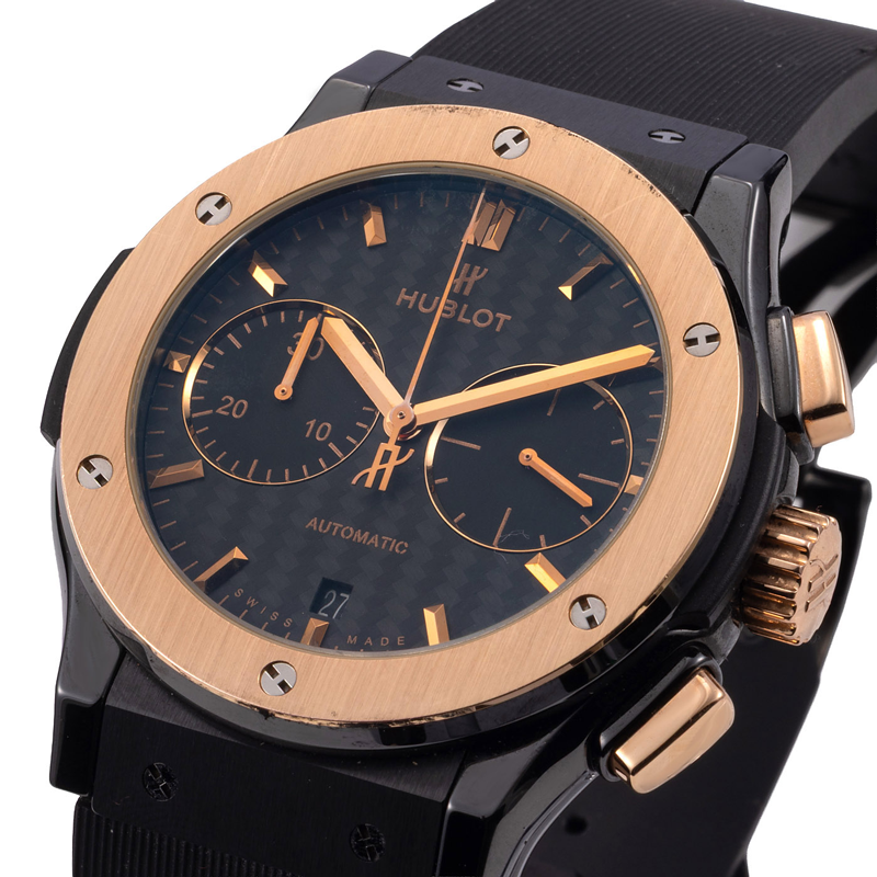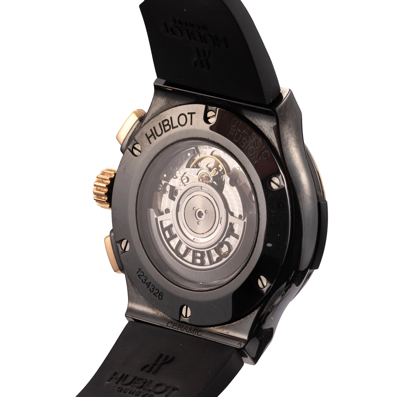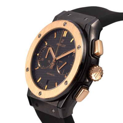 Ανακαλύψτε το Hublot Classic Fusion Chronograph Ceramic King Gold με διάμετρο 45mm.Tο ρολόι έχει υποβληθεί στους απαραίτητους ποιοτικούς ελέγχους από το τεχνικό τμήμα, για τη διασφάλιση της αυθεντικότητας και καλής λειτουργίας, όπως ορίζεται από τον κατασκευαστή. Συνοδεύεται από ένα χρόνο γραπτής εγγύησης.