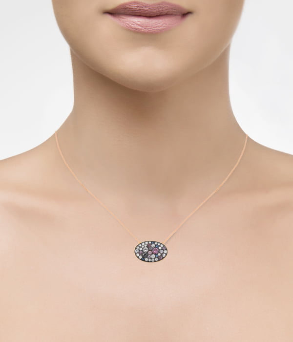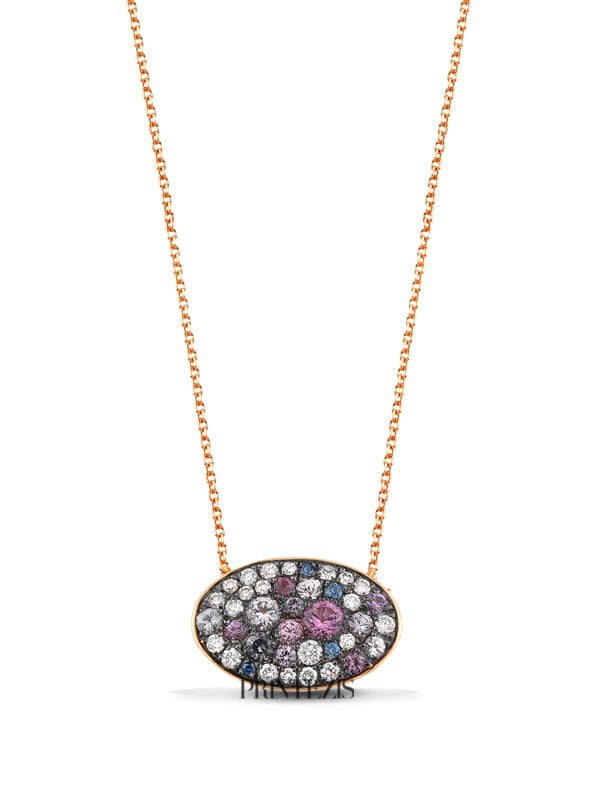 Κολιέ Ροζ Χρυσό Κ18 με Διαμάντια και Ημιπολύτιμες Πέτρες