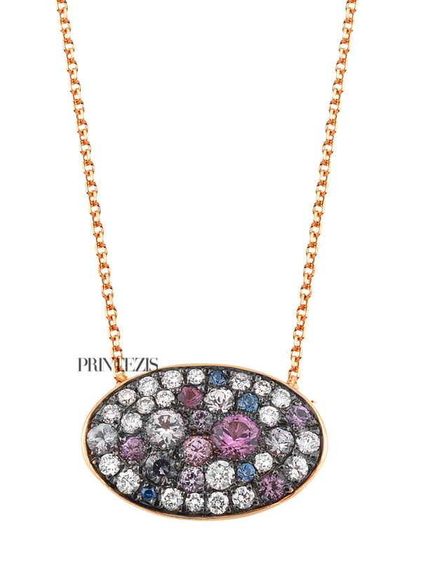 Κολιέ Ροζ Χρυσό Κ18 με Διαμάντια και Ημιπολύτιμες Πέτρες. Αναβαθμίστε πολυτελώς τις επίσημες εμφανίσεις σας φορώντας τη λάμψη των πολύτιμων και ημιπολύτιμων λίθων.Διαλέξτε το κατάλληλο κόσμημα για εσάς ή για δώρο ανακαλύπτοντας τις ολοκληρωμένες συλλογές μας σε μοντέρνα και κλασικά σχέδια. Κάθε κόσμημα συνοδεύεται από πιστοποιητικό και εγγύηση ποιότητας PRINTEZIS.