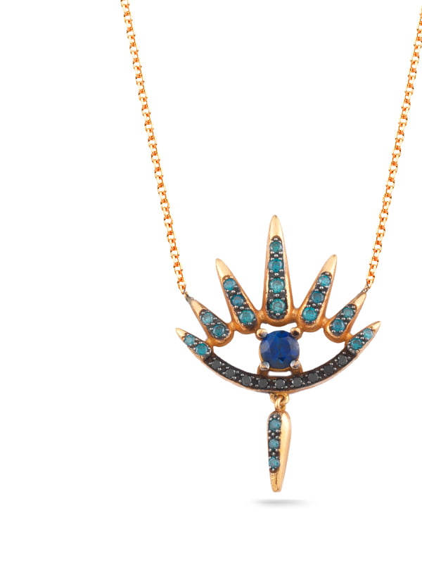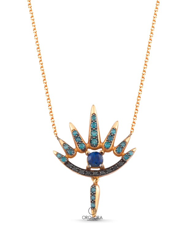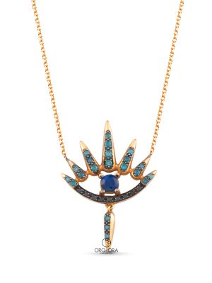 Κολιέ Ροζ Χρυσό Κ18 με Διαμάντια και Ζαφείρι