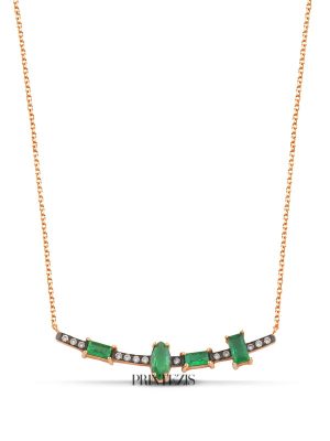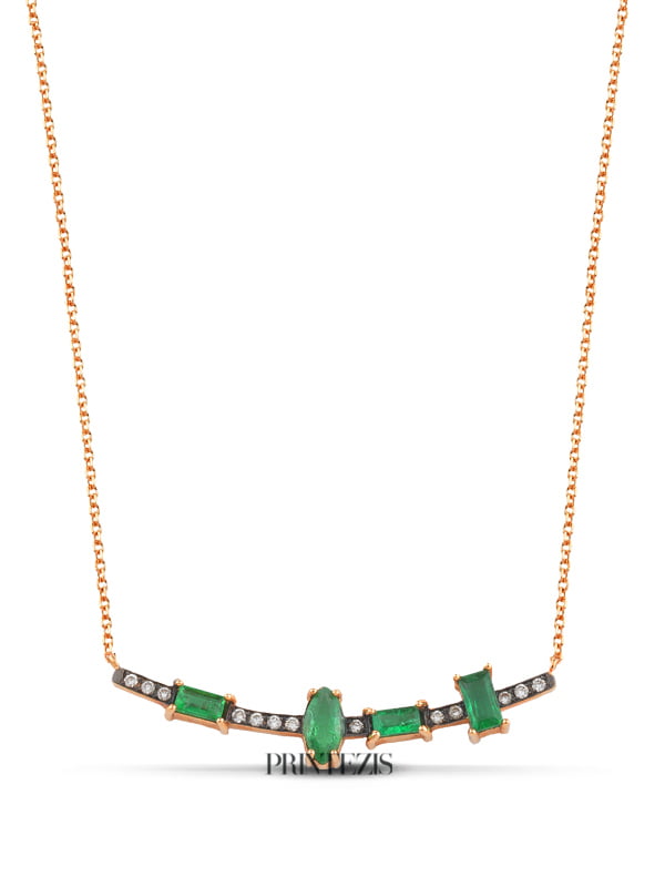Κολιέ Ροζ Χρυσό Κ18 με Σμαράγδια και Διαμάντια. Αναβαθμίστε πολυτελώς τις επίσημες εμφανίσεις σας φορώντας τη λάμψη των πολύτιμων και ημιπολύτιμων λίθων.Διαλέξτε το κατάλληλο κόσμημα για εσάς ή για δώρο ανακαλύπτοντας τις ολοκληρωμένες συλλογές μας σε μοντέρνα και κλασικά σχέδια. Κάθε κόσμημα συνοδεύεται από πιστοποιητικό και εγγύηση ποιότητας PRINTEZIS.
