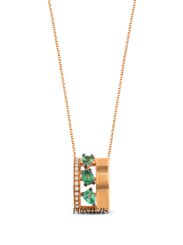 Κολιέ Ροζ Χρυσό Κ18 με Σμαράγδια και Διαμάντια. Αναβαθμίστε πολυτελώς τις επίσημες εμφανίσεις σας φορώντας τη λάμψη των πολύτιμων και ημιπολύτιμων λίθων.Διαλέξτε το κατάλληλο κόσμημα για εσάς ή για δώρο ανακαλύπτοντας τις ολοκληρωμένες συλλογές μας σε μοντέρνα και κλασικά σχέδια. Κάθε κόσμημα συνοδεύεται από πιστοποιητικό και εγγύηση ποιότητας PRINTEZIS.