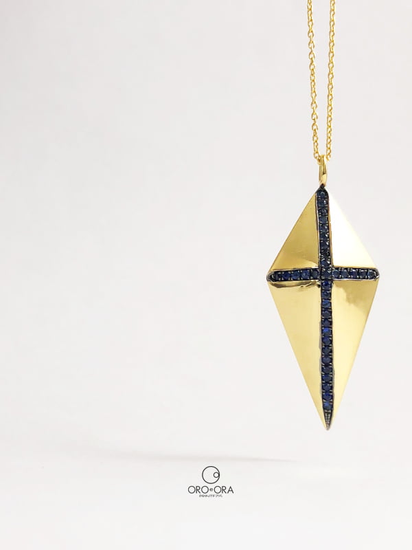 Κολιέ Ροζ Χρυσό Κ18 με Ζαφείρια