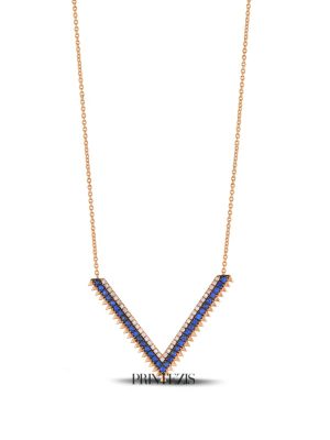Κολιέ Ροζ Χρυσό Κ18 με Ζαφείρια και Διαμάντια