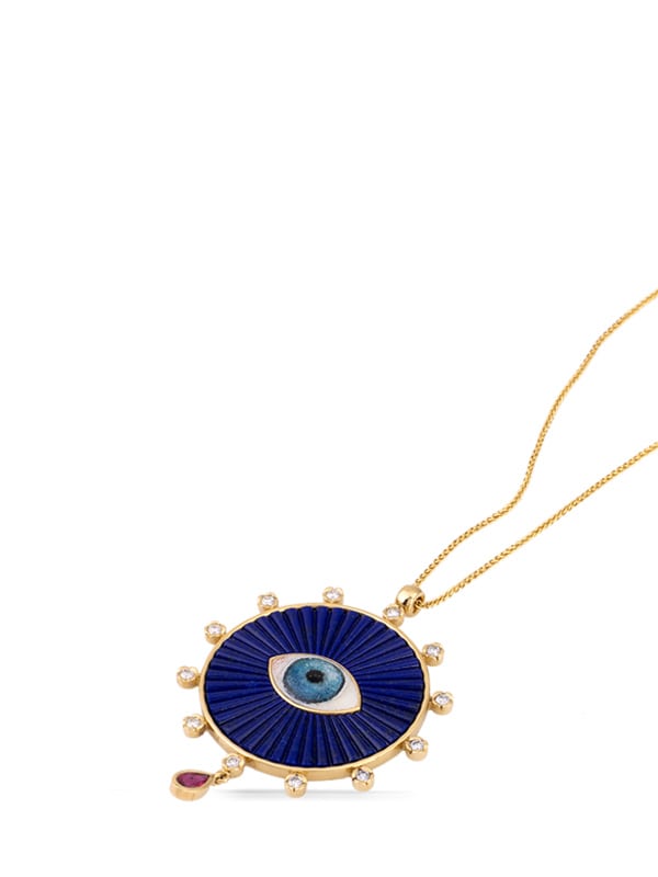 Κολιέ Χρυσό Κ18 με Διαμάντια, Λάπις και Ρουμπίνι