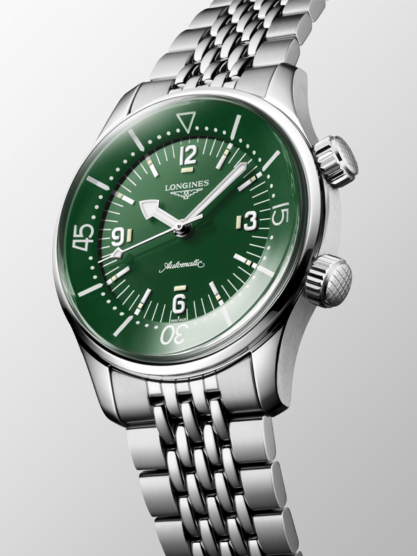 Αυτόματο Ανδρικό ρολόι του οίκου Longines της σειράς The Longines Legend Diver Watch με πράσινο καντράν. Με διάμετρο 39,00mm και στεγανό στα 300m / 30 bar. Συνοδεύεται από εγγύηση επίσημης αντιπροσωπείας. Official retailer του Brand Longines για την Ελλάδα.