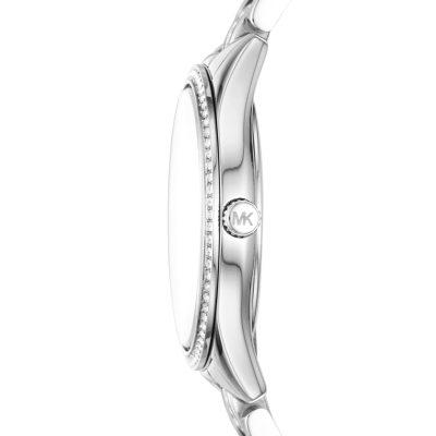 €45 x 6 άτοκες Γυναικείο ρολόι της σειράς Lauryn από την εταιρία Michael Kors. Το στρογγυλό καντράν, με το μεταλλικό μπρασελέ σε ασημί χρώμα και τις διακοσμητικές πέτρες, κάνουν το ρολόι ιδανικό για καθημερινές άλλα και πιο επίσημες εμφανίσεις.