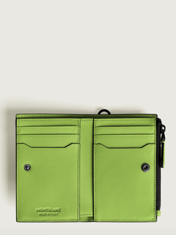 €73.33 x 6 άτοκες Δερμάτινο πορτοφόλι του οίκου Montblanc σε πράσινο χρώμα.Διαθέτει 6 θήκες καρτών, μια θήκη για χαρτονομίσματα και μια με φερμουάρ. Εσωτερικά, διαθέτει κουμπί και εντυπωμένο το λογότυπο της Montblanc. Διαστάσεις : 70 X 10 X 100 mm