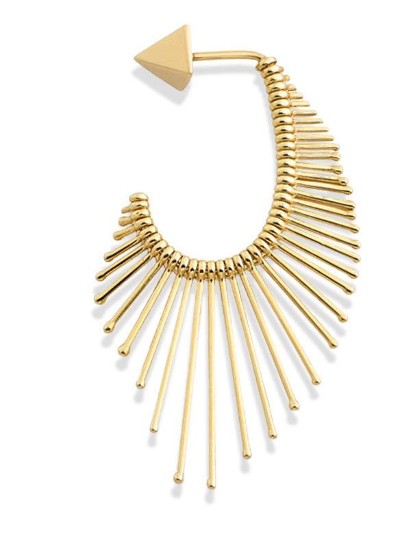Σκουλαρίκια Χρυσά Κ18 από Peruffo με κινητά στοιχεία, διατεταγμένα σε ακτινωτό μοτίβο, και καρφωτό κούμπωμα. Κάθε στοιχείο κινείται αρμονικά με τα διπλανά του, δημιουργώντας ρευστές και απαλές, καμπυλωτές μορφές.