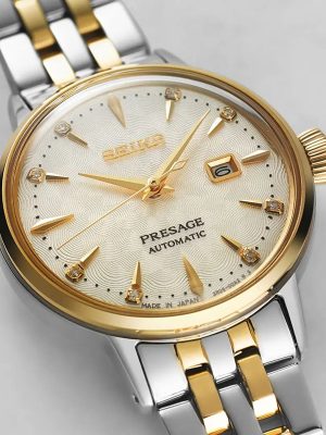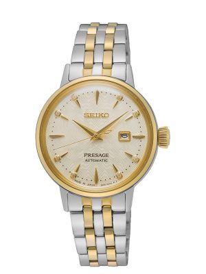 €50 x 12 άτοκες Αυτόματο Γυναικείο ρολόι του οίκου Seiko της σειράς Presage Cocktail Time 'White Lady' Automatic με Χρυσό καντράν. Με διάμετρο 30,00mm και στεγανό στα 50m / 5 bar. Συνοδεύεται από εγγύηση επίσημης αντιπροσωπείας. Official retailer του Brand Seiko για την Ελλάδα.