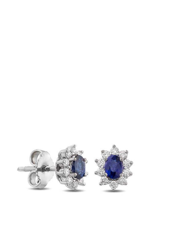 Σκουλαρίκια Λευκόχρυσα Κ18 με Ζαφείρια και Διαμάντια