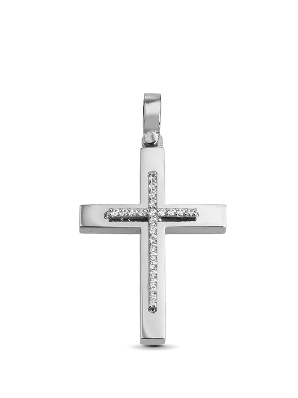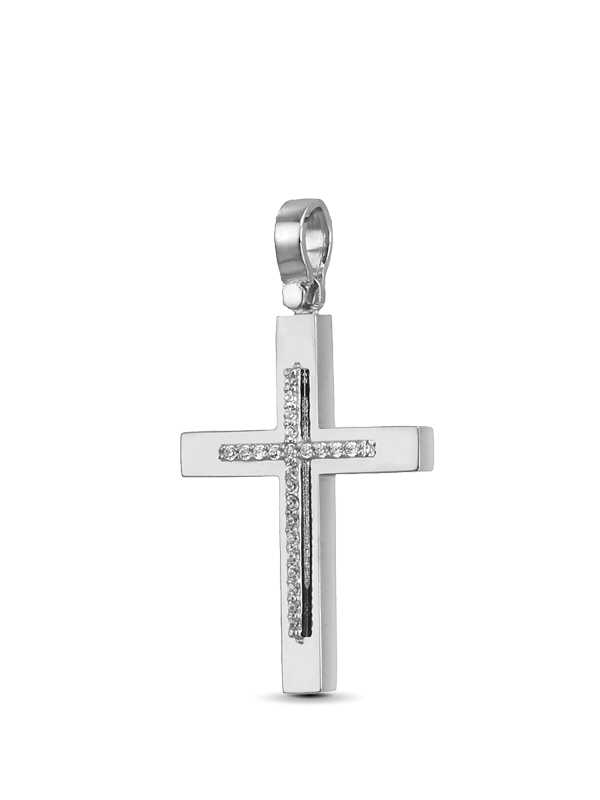 Σταυρός Λευκόχρυσος Κ18 με Ζιρκόν