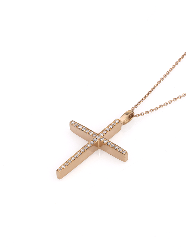 Σταυρός ροζ Χρυσός Κ18 με Διαμάντια. Αναβαθμίστε πολυτελώς τις επίσημες εμφανίσεις σας φορώντας τη λάμψη των πολύτιμων και ημιπολύτιμων λίθων.Διαλέξτε το κατάλληλο κόσμημα για εσάς ή για δώρο ανακαλύπτοντας τις ολοκληρωμένες συλλογές μας σε μοντέρνα και κλασικά σχέδια. Κάθε κόσμημα συνοδεύεται από πιστοποιητικό και εγγύηση ποιότητας PRINTEZIS.