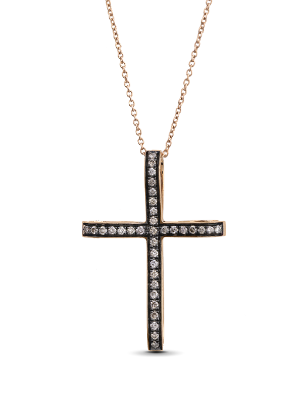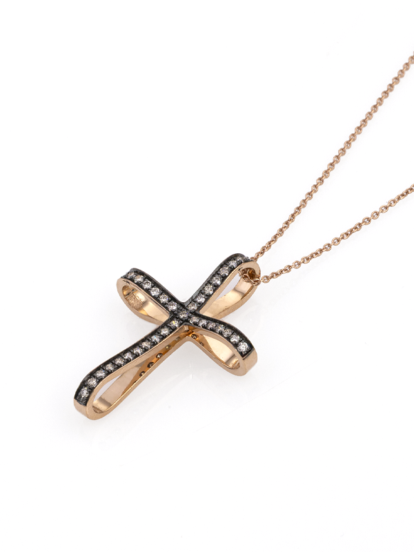 Σταυρός Ροζ Χρυσός Κ18 με Καφέ Διαμάντια