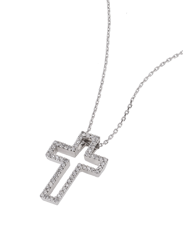 Σταυρός Λευκόχρυσος Κ18 με Διαμάντια. Αναβαθμίστε πολυτελώς τις επίσημες εμφανίσεις σας φορώντας τη λάμψη των πολύτιμων και ημιπολύτιμων λίθων.Διαλέξτε το κατάλληλο κόσμημα για εσάς ή για δώρο ανακαλύπτοντας τις ολοκληρωμένες συλλογές μας σε μοντέρνα και κλασικά σχέδια. Κάθε κόσμημα συνοδεύεται από πιστοποιητικό και εγγύηση ποιότητας PRINTEZIS.