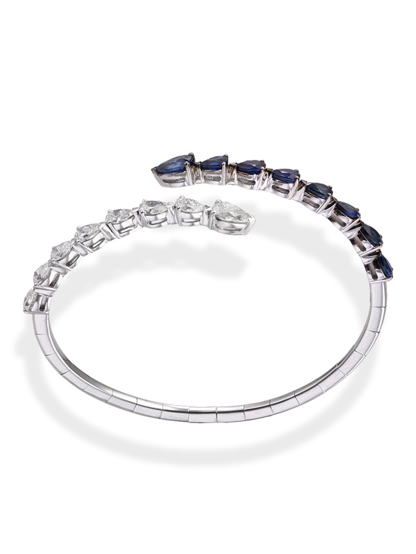 Βραχιόλι Λευκόχρυσο Κ18 με Διαμάντια και Ζαφείρια