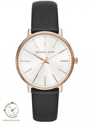 €58.5 x 3 άτοκες Γυναικείο ρολόι της σειράς Pyper από την εταιρία Michael Kors. Το στρογγυλό καντράν, με το δερμάτινο λουράκι σε μαύρο χρώμα και τις διακοσμητικές πέτρες, κάνουν το ρολόι ιδανικό για καθημερινές άλλα και πιο επίσημες εμφανίσεις.