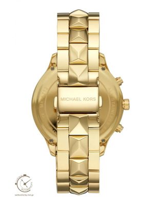 Γυναικείο ρολόι χρονογράφος της σειράς Runway Mercer από την εταιρία Michael Kors. Το στρογγυλό καντράν μεγάλου μεγέθους, με το μεταλλικό μπρασελέ σε χρυσό χρώμα, κάνουν το ρολόι ιδανικό για καθημερινές άλλα και πιο επίσημες εμφανίσεις.