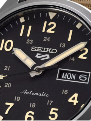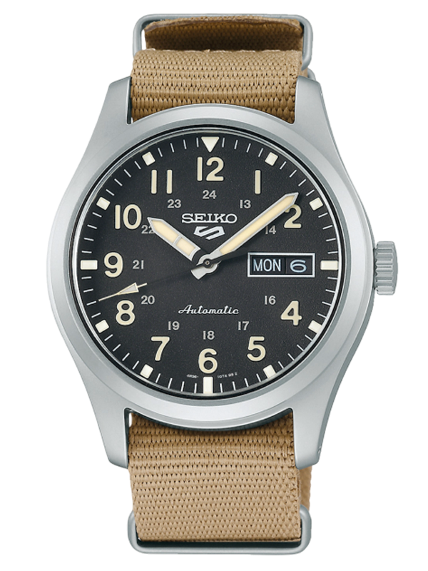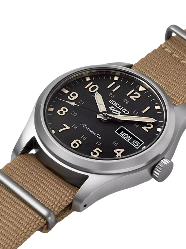 €51.67 x 6 άτοκες Ρολόι Seiko 5 Sports με 39,4 mm και ανθεκτικό νάιλον λουράκι, προσθέτοντας έναν δυναμικό χαρακτήρα που υπογραμμίζει το περιπετειώδες ύφος του ρολογιού. Σπορ αλλά και ευέλικτο για καθημερινή χρήση, αποτελεί χαρακτηριστικό δείγμα της τεχνογνωσίας της Seiko, από τον αξιόπιστο αυτόματο μηχανισμό έως το προσεγμένο φινίρισμα. Το μαύρο καντράν ξεχωρίζει για την υψηλή αναγνωσιμότητα και διαθέτει ένδειξη ημέρας-ημερομηνίας στη θέση 3 η ώρα, καθώς και το λογότυπο της σειράς Seiko 5 στη θέση 12 η ώρα, ολοκληρώνοντας μια σύγχρονη και λειτουργική αισθητική.