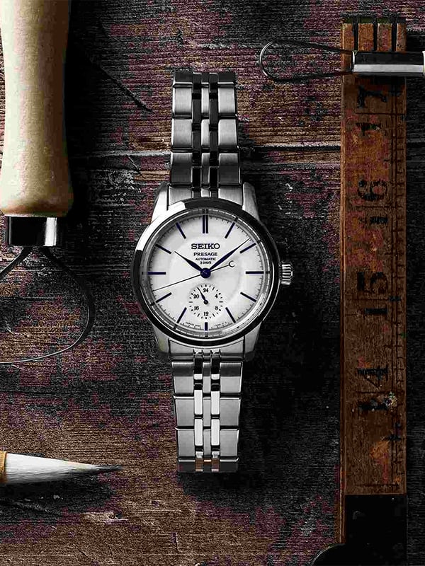€111.11 x 18 άτοκες Αυτόματο Ανδρικό ρολόι του οίκου Seiko της σειράς Presage με λευκό καντράν απο τις περιφημες Ιαπωνικές πορσελάνες Arita. Με διάμετρο 40,50mm και στεγανό στα 100m / 10 bar. Συνοδεύεται από εγγύηση επίσημης αντιπροσωπείας. Official retailer του Brand Seiko για την Ελλάδα.