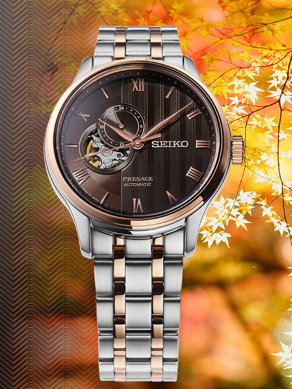 €52.5 x 12 άτοκες Αυτόματο ανδρικό ρολόι Seiko της συλλογής Presage με open heart. Με καφέ καντράν και διάμετρο 41,80mm